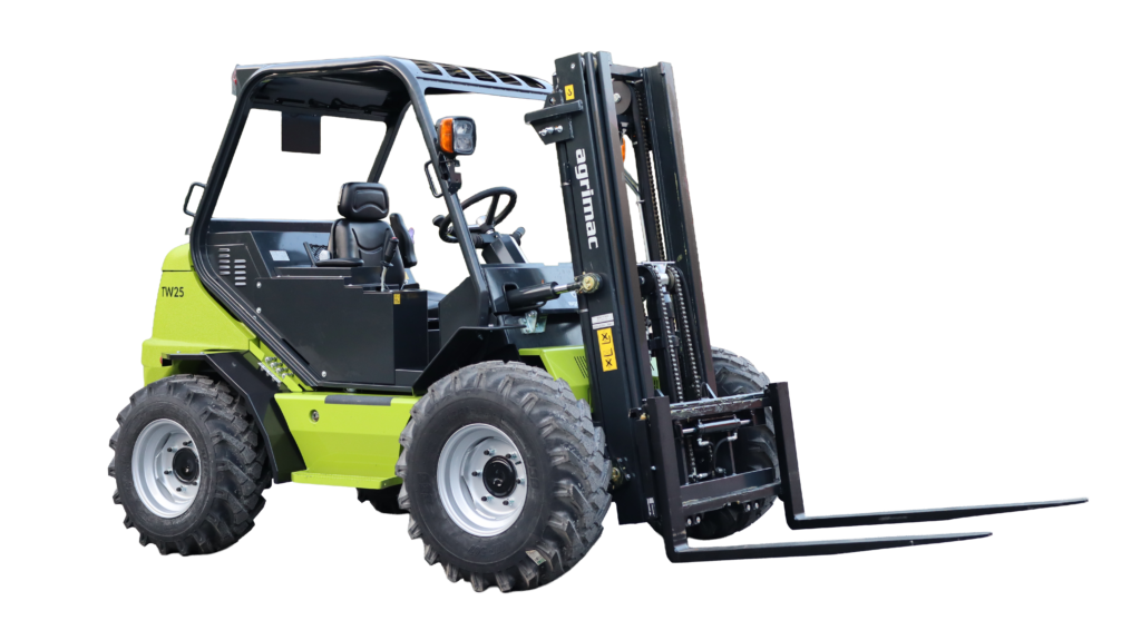 Junto a la TE17, Agrimac ha presentado otras soluciones clave dentro de su catálogo. Entre ellas, la carretilla elevadora todoterreno TW25, diseñada para ofrecer máxima robustez, estabilidad y capacidad de trabajo en aplicaciones donde la potencia es un factor determinante. Se trata de una máquina capaz de adaptarse a distintos entornos y usos con gran eficacia, y que además prescinde de filtro de partículas, lo que reduce las paradas por mantenimiento y contribuye a mejorar el rendimiento operativo y la disponibilidad del equipo, lo que la hace ideal para los alquiladores.