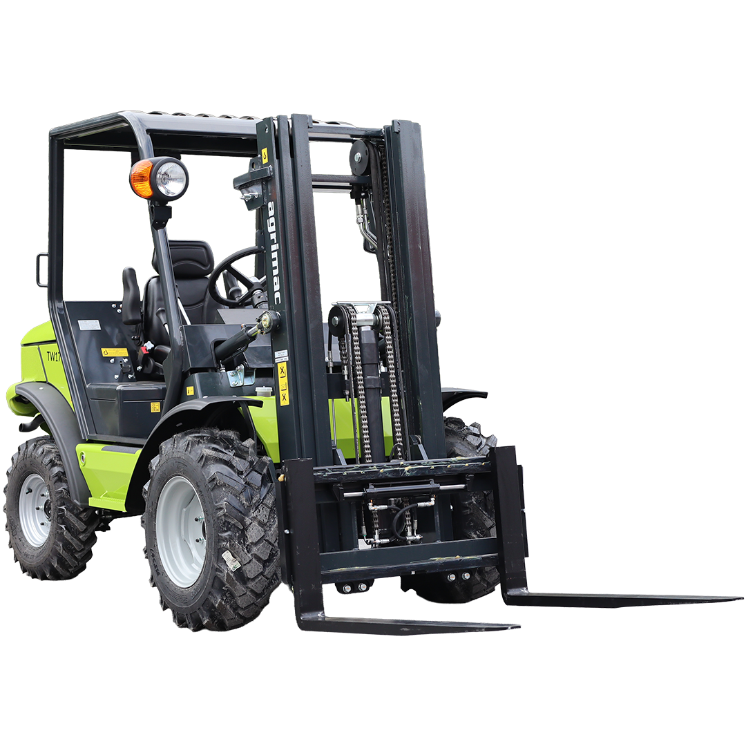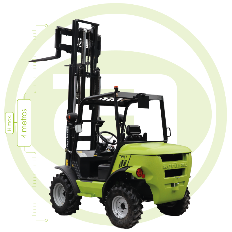 La AGRIMAC TW17 es una carretilla todoterreno 4×4 equilibrada y versátil, capaz de elevar hasta 1.700 kg con mástiles de hasta 4 metros. Su tamaño reducido y su agilidad la hacen ideal para trabajar en espacios limitados o sobre terrenos irregulares, manteniendo siempre la estabilidad y el control.